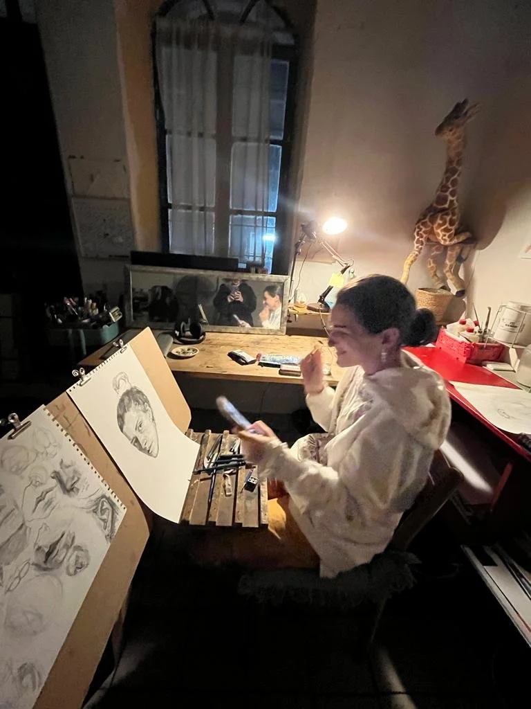 Two abstract textured paintings side by side. The left painting has soft pastel colors and gentle strokes, with a mostly light background and hints of yellow, pink, and purple. The right painting has darker, more vivid colors with a textured surface, featuring shades of purple, blue, and black, resembling a landscape or a branching tree.